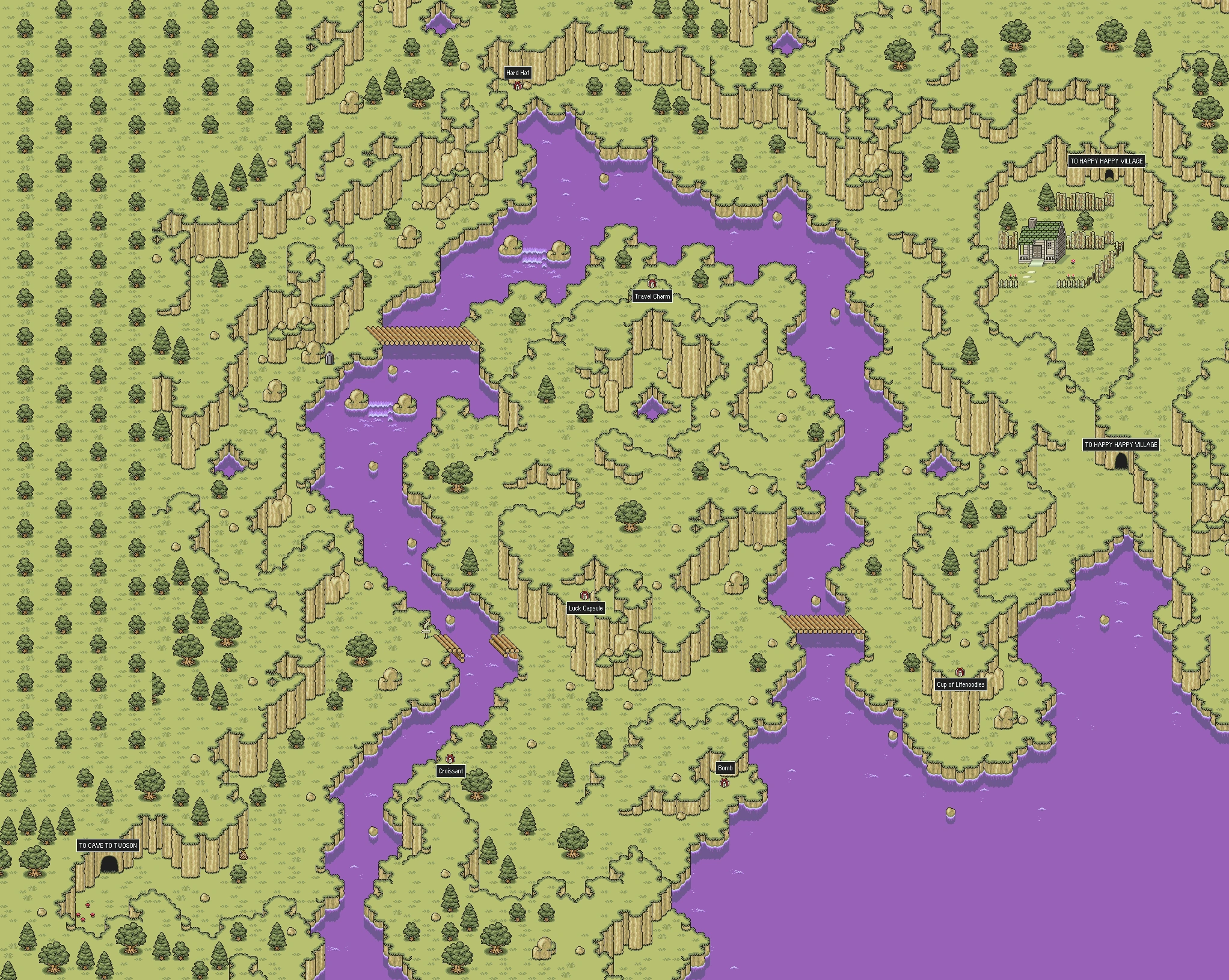 La primera vez que el jugador pasa a través aquí, un puente cerca de la entrada está roto, obligando al jugador a tomar una ruta alternativa, donde un extraño objeto, en forma de lápiz bloqueaba el camino. Esto obliga al jugador a dar marcha atrás a Twoson, donde, al llegar, Apple Kid inventa el Pencil Eraser para eliminar el obstáculo y permitir la entrada a Happy Happy Village.