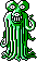 Выглядит как зелёное, трёхглазое существо похожее на кальмара.