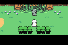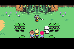 As they approach the temple, they encounter a Pigmask Army battalion attempting to break their way in: after a Clayman tries to ram through the vines, and the Masked Man attempts to blow the vines away with a bomb, which only succeeds in destroying the Clayman. Their attempts are interrupted when the army realizes the party is present, and a Pigmask Colonel leads an attack against them with several Pigmask Majors.